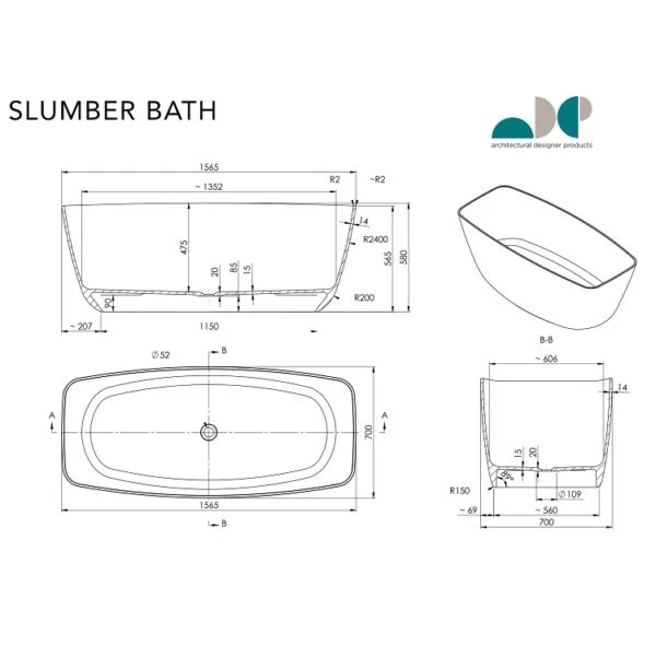 View ADP Slumber 1565 Freestanding Bath SLUMBATH1600G Product Specs