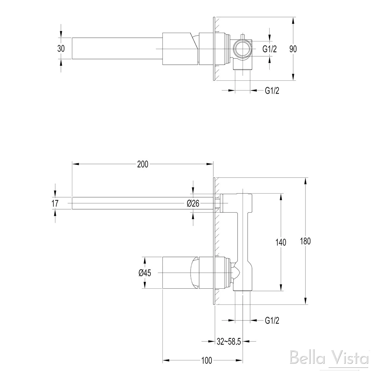 Bella Vista Zenon Noir Wall Mixer With Spout