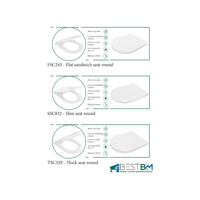 TSC329 Thick Seat (30 mm lid profile) or SSC832 Slim Seat (20 mm lid profile). For these alternative seats, please advise model required when ordering