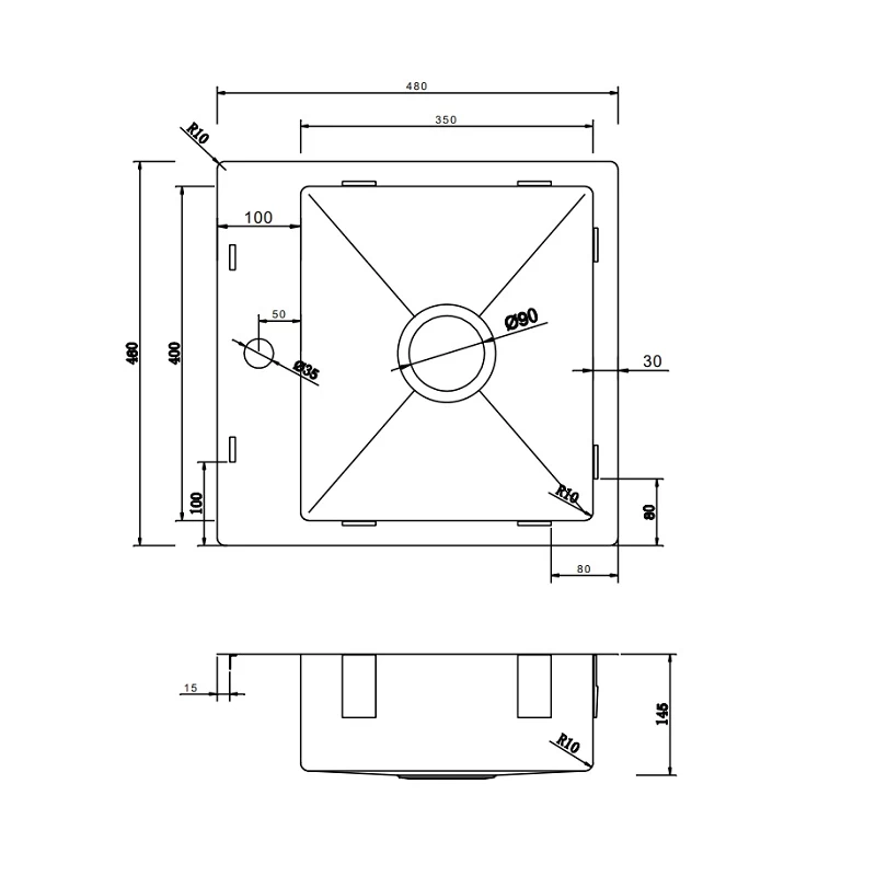 Size – 480mm L x 460mm W x 145mm H