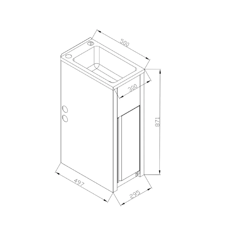 This unit features a high-quality 304 stainless steel bowl with dual tapholes for versatile use. The cabinet includes an Australian Watermarked basket waste and by-pass kit, ensuring a seamless installation. The reversible finger pull door offers easy access and a sleek look, while the galvanised steel powder-coated cabinet provides durability and style. Side entry holes allow for hidden washing machine stop cock installation, keeping your space tidy. Measuring 300mm x 500mm x 870mm, this cabinet is the perfect fit for any laundry room. Proudly assembled in Australia, the Vasca 20L Laundry Tub and Cabinet combines functionality, convenience, and quality craftsmanship to meet all your laundry needs.