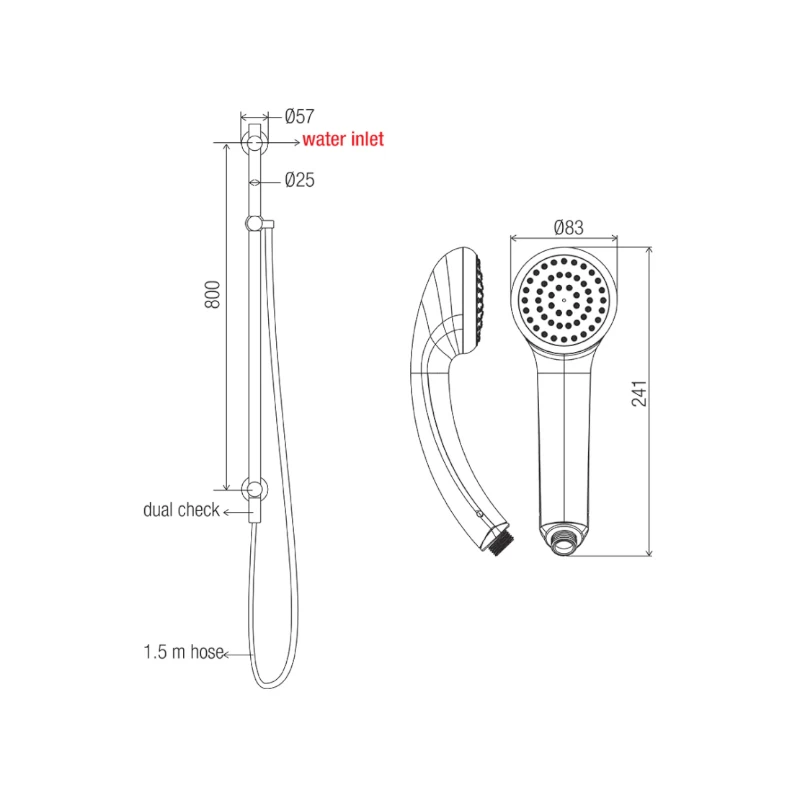 View Con-Serv Riviera Rail Shower With Princess – Top Inlet Product Specs