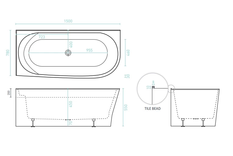 PLEASE NOTE: A flexible bath connector cannot be used with Natalia 1500mm bath. Connect the waste directly to the drain.
