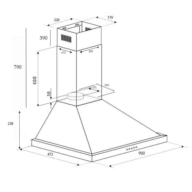 The extraction capacity of 900m3/hr provides strength and power to this stylish rangehood.