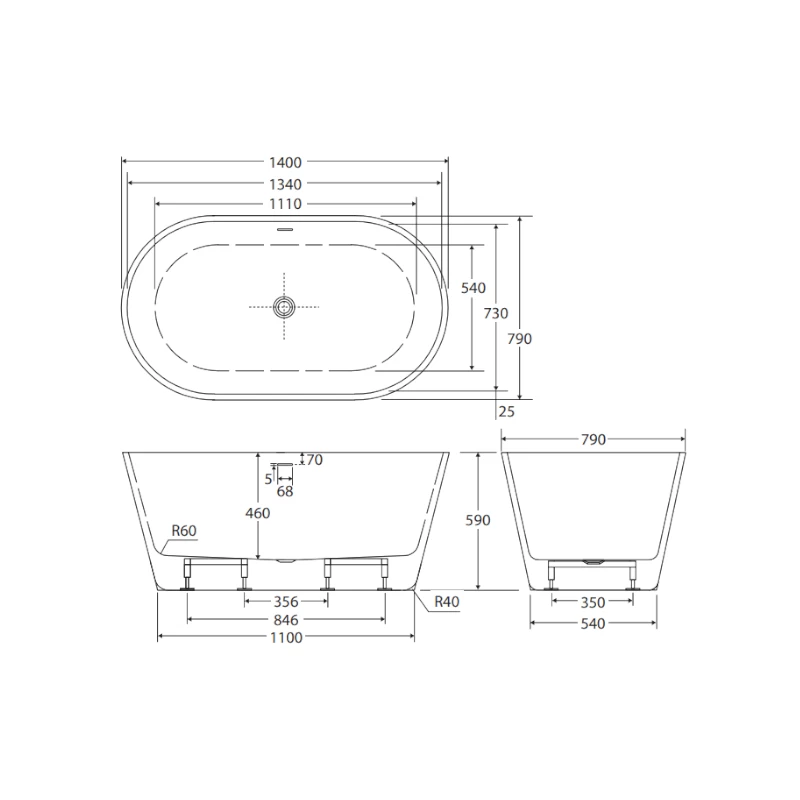 View Austin Freestanding Bath With Overflow 1400mm Product Specs
