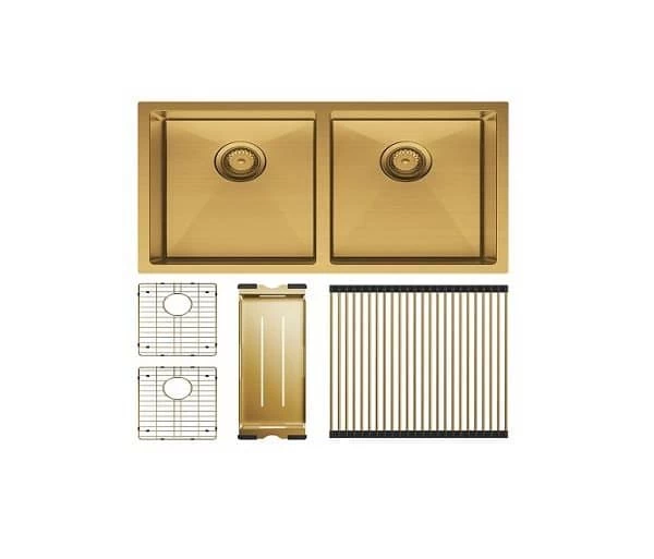 Fienza Hana 27L Double Kitchen Sink Kit PVD Rugged Brass