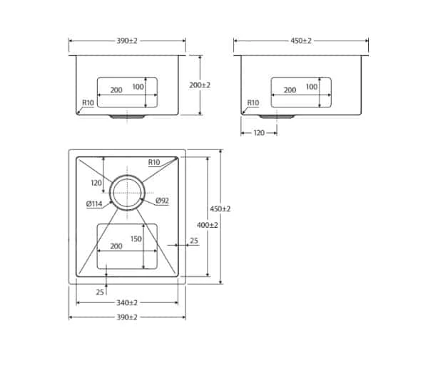 Hand made from 1.2 mm thick, high quality 304 stainless steel