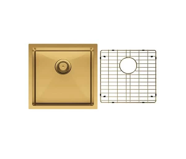 Fienza Hana 32L Single Kitchen Sink Kit PVD Rugged Brass