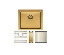 View Fienza Hana 32L Single Kitchen Sink Kit PVD Rugged Brass Product Specs
