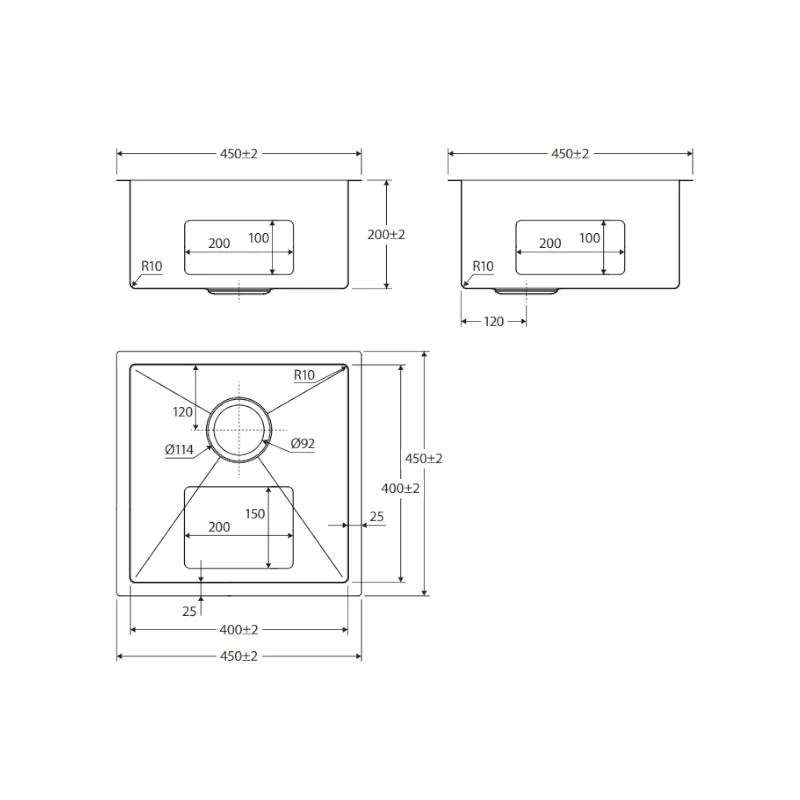 Outer Dimensions: 450 x 450 x 200 mm
