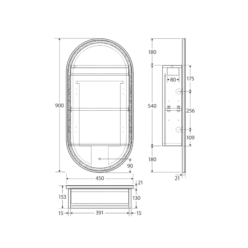 View Fienza Pill LED Mirror Cabinet Product Specs