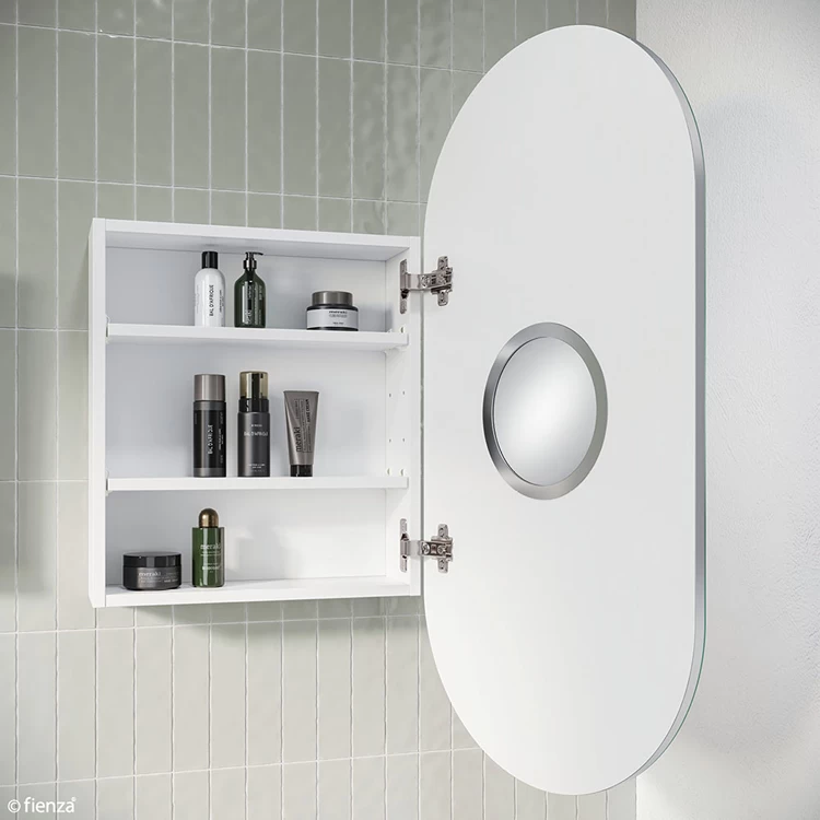 These Curved Mirror Cabinets are available in modern arch and pill designs.