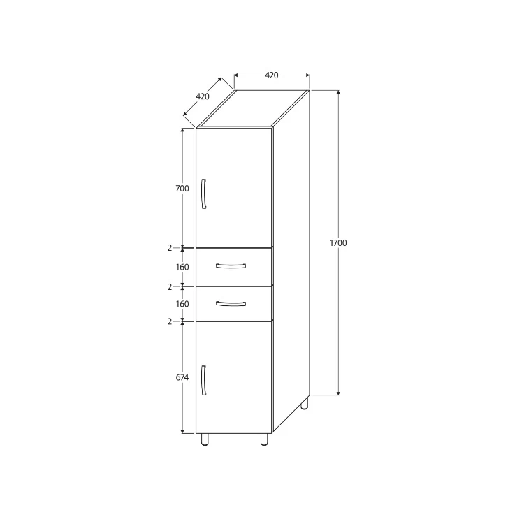 Can be wall-hung (1700mm tall without legs)