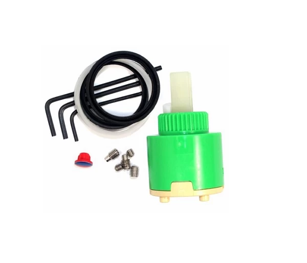 Kit includes 1x 35mm Flat Mixer Cartridge, 3x Allen Keys, 5 types of Grub Screw, 2x Mixer Lip Seals, 2x Friction Washers, 1x Hot/Cold Indicator.
