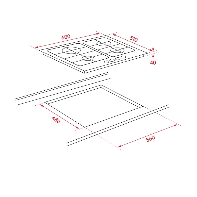 Physical (w, d, h mm): 600 × 510 × 40mm