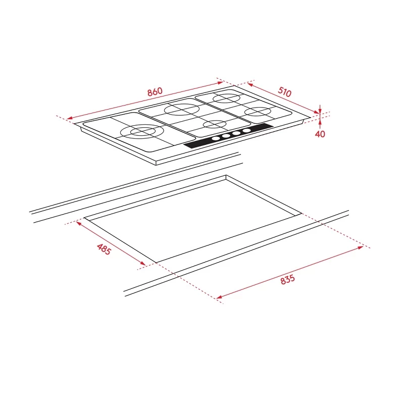 Physical (w, d, h mm): 860 × 510 × 40mm