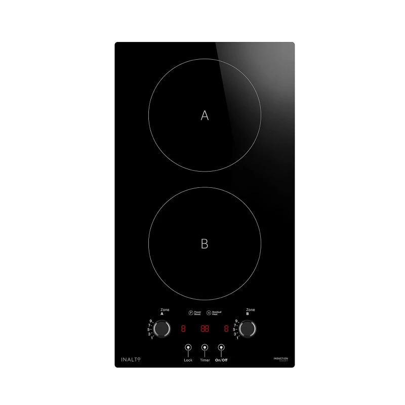 The InAlto 30cm induction cooktop is crafted with durable ceramic glass and includes two cooking zones with touch & knob controls along with industry-leading safety features such as auto-power off, clear labelling and residual heat indicators.