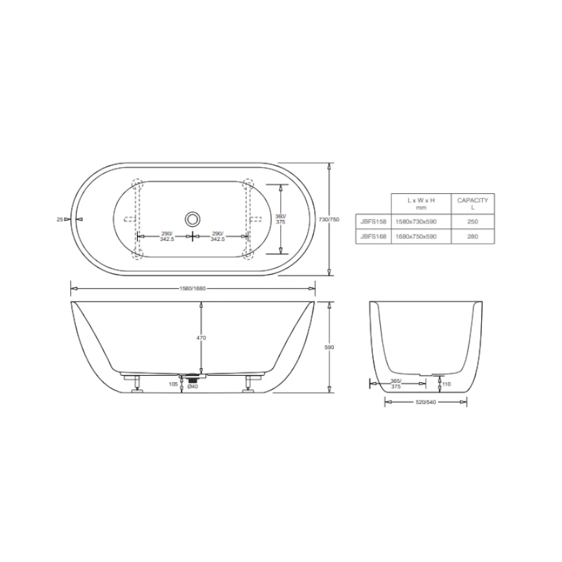 View Johnson Suisse Venezia Freestanding Acrylic Bath 1680 Product Specs