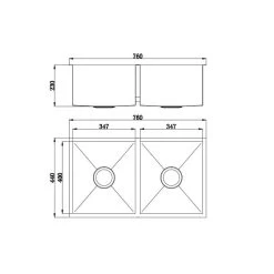 BUK Traditionell Double Bowl Sink Under / Overmount 480 X 780mm