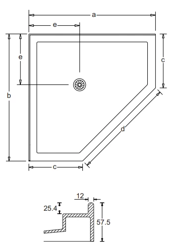 900 W x 900 D x 57.5 H Centre Outlet