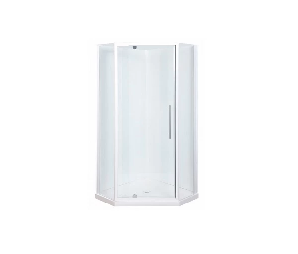 The Marbletrend Flinders Neo Corner Shower Screen is a contemporary semi-frameless shower screen with return panels