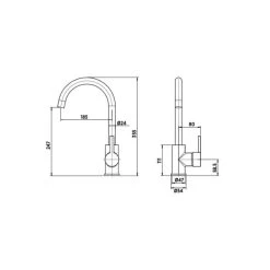 Nero York Kitchen Mixer Hook Spout With Black Porcelain Lever Chrome