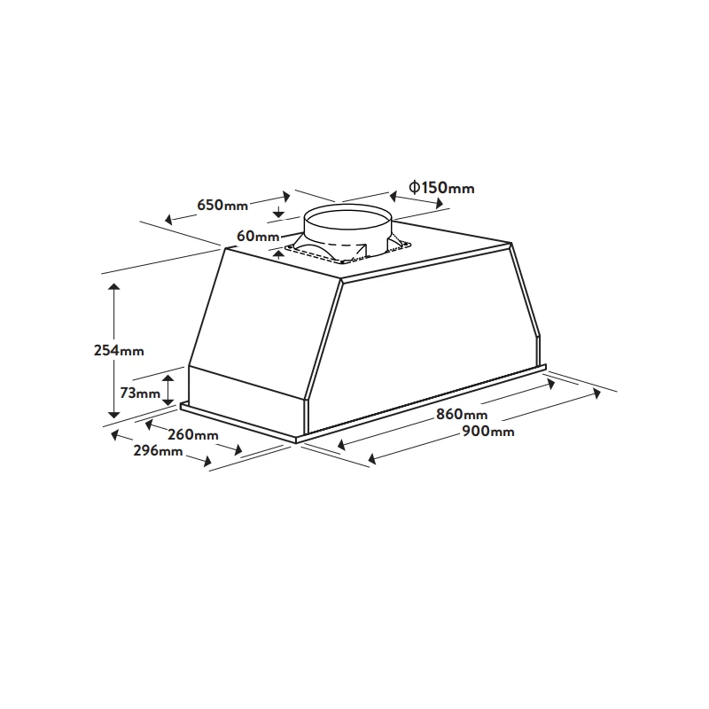 Overall Dimensions: (mm): 254(h) x 900(w) x 296(d) mm