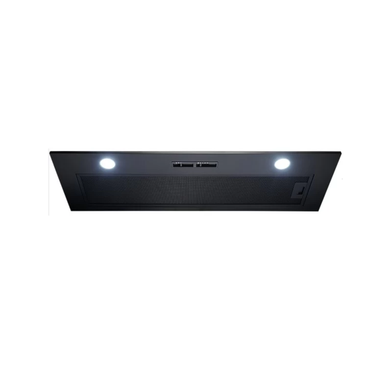 Omega 90cm undermount rangehood with 2 LED lights and a matte black finish.