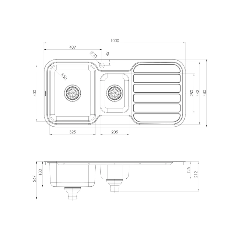 Phoenix 1000 Series 1 and 1/3 Left Hand Bowl Sink with Drainer and Taphole
