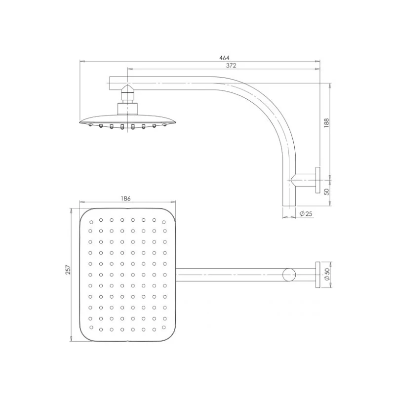 Phoenix Rush High-Rise Shower Arm & 200 x 250mm Rose