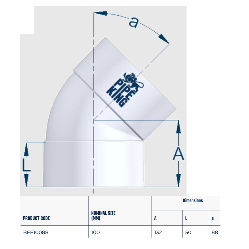 View Pipe King 100mm x 88Deg F&F Plain Bend DWV BFF10088 specs at Pipe King Website