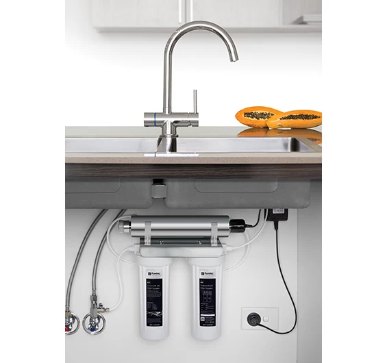 The ESR2-T4 system includes the Tripla-T4 mixer tap and an undersink UV system designed to kill bacteria.