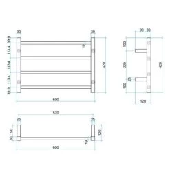 Thermogroup Straight Square Ladder Heated Towel Rail W600 X H420mm