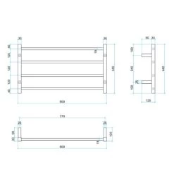 Thermogroup Straight Square Ladder Heated Towel Rail W800 X H440mm