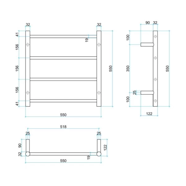 PLEASE NOTE: Thermogroup Ladder Heated Towel Rail SR25MBG specifications are for information purposes only. Whilst every effort has been made to ensure the product specifications are accurate, due to continuing product development and improvement the specifications are subject to change. Specifications can be used to rough in and fit timber supports in the wall however we recommend no holes are drilled without having the product on site or verifying the details with the manufacturer. Thermogroup cannot be held liable or responsible for errors due to updated specifications.