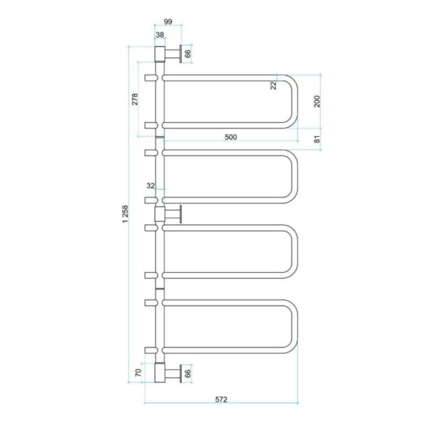 The SV68 Heated Towel Rail is a 570×1260 8 bar Polished Stainless Steel swivel rail.