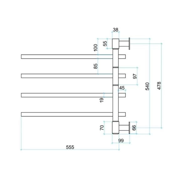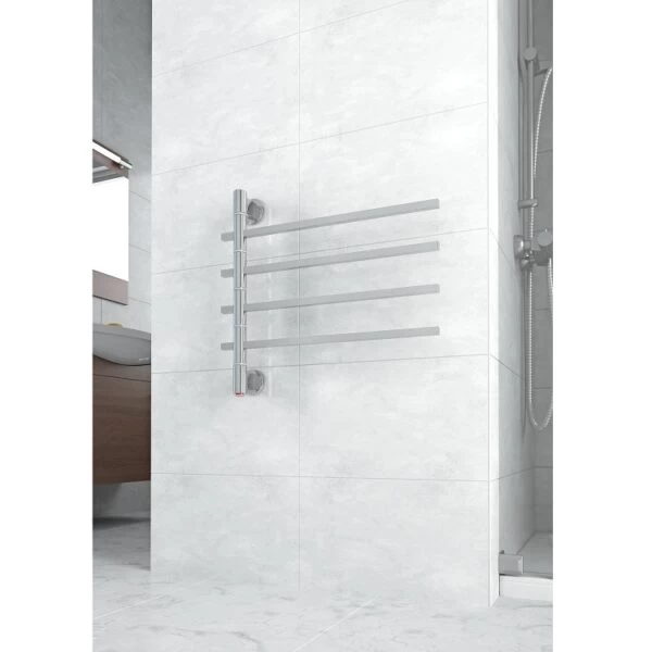The SV35 Heated Towel Rail is a 600×540 4 bar Polished Stainless Steel swivel rail.