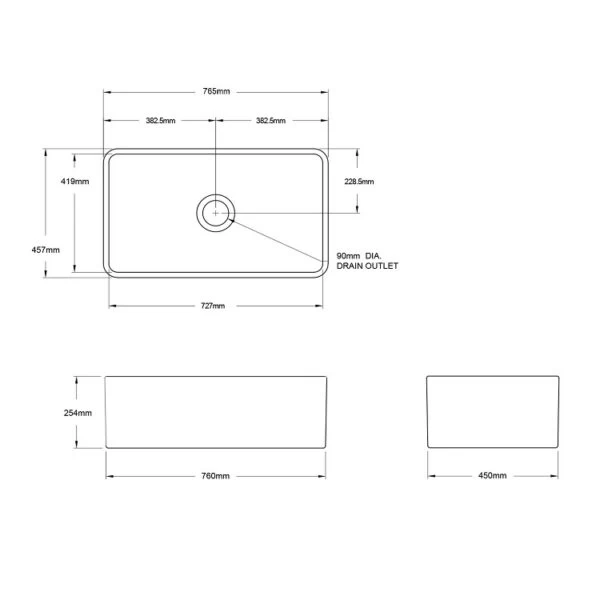 Novi 75 x 46 Fine Fireclay Matte Black Butler Sink Specifications: