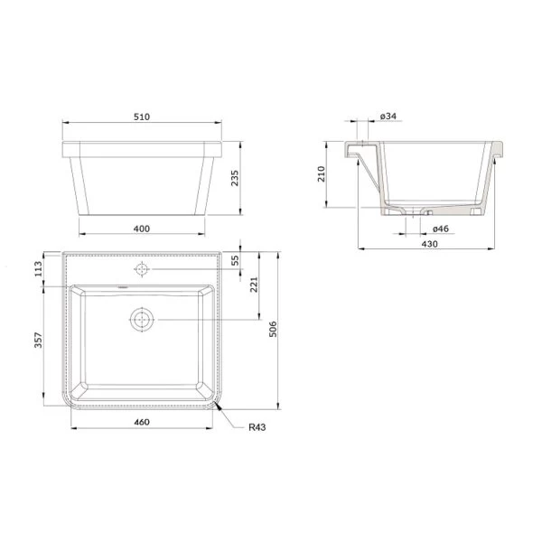 Note: Fine Fireclay is a natural product and therefore subject to variations. This should be seen as a quality that adds to its unique natural beauty. Variations +/- 2% to the specifications are common and acceptable and are within industry tolerance. We always recommend the cabinet maker and stone provider has the actual sink with them to measure before making cabinetry or cutting stone.