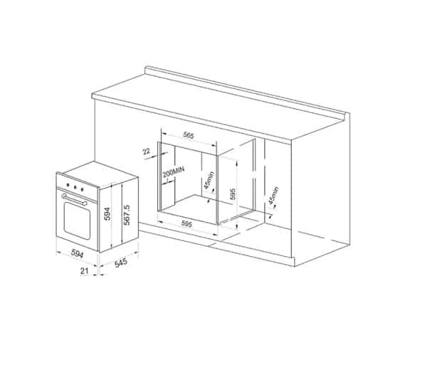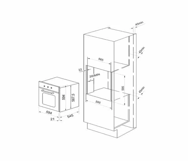 Dimensions: 594mm (W) x 545mm (D) x 594mm (H)